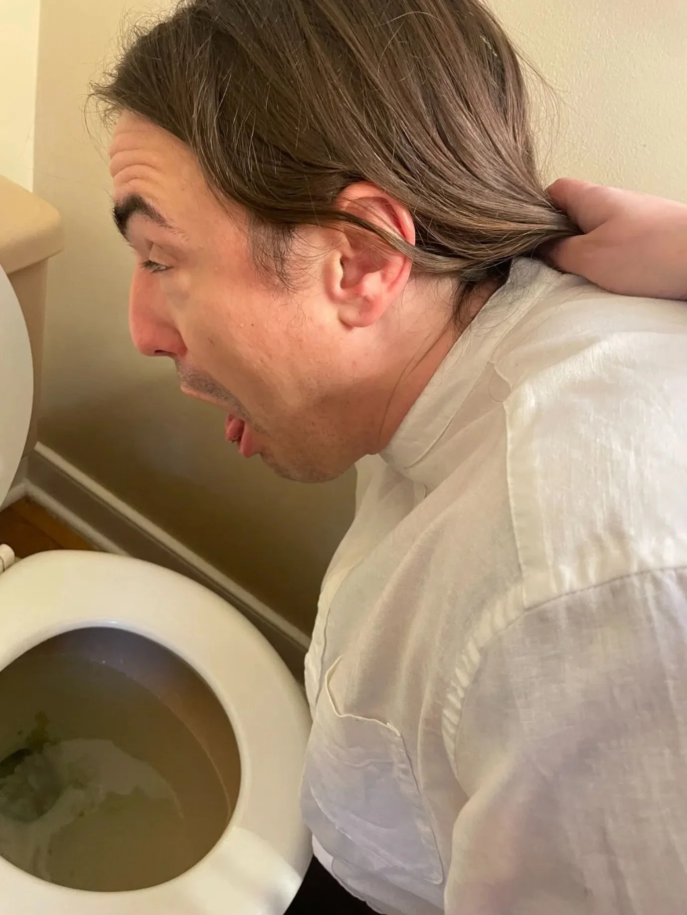 A sip of water. A soothing back rub. A mere holding of hair while I vomit.